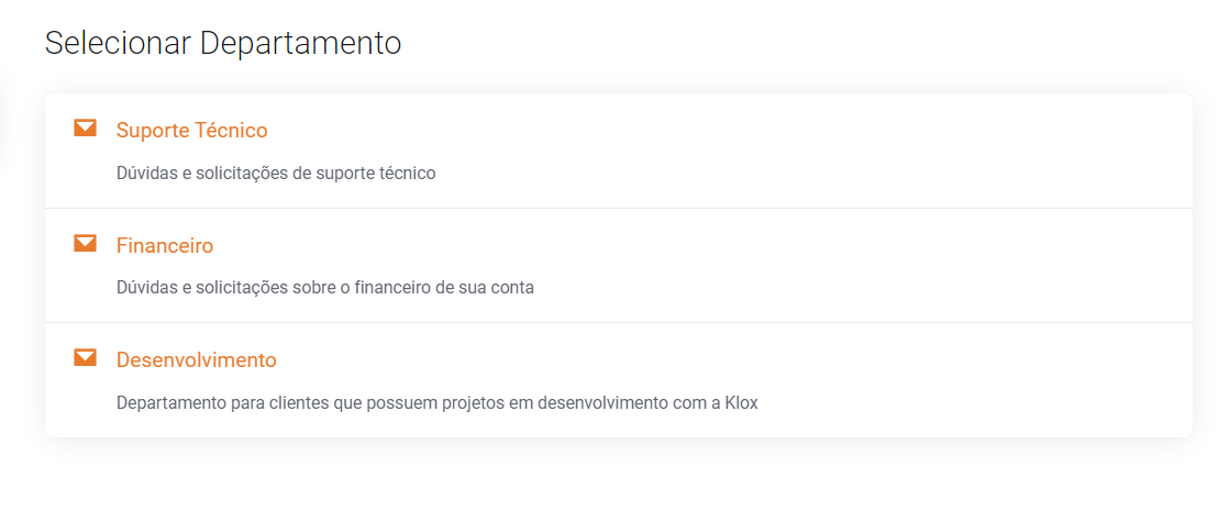 Selecione então o departamento que você deseja criar o ticket, se é uma questão técnica ou relacionada a assuntos de sua fatura/pacote: