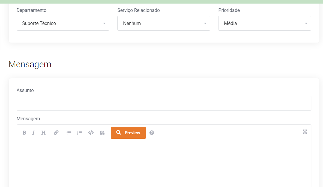 Será exibida então a tela para abertura do chamado. Preencha atentamente todas as informações sendo o mais claro e detalhado possível. Em caso de problemas técnicos nos informe passo a passo como reproduzir o problema, nos envie print screen da mensagem de erro, etc. Clique então em Enviar para abertura do chamado.